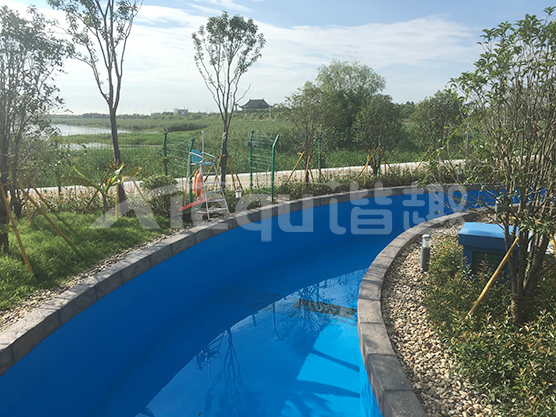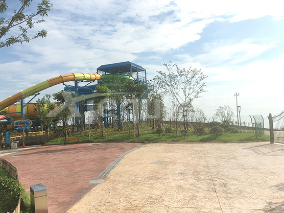鋪裝類型:壓印藝術(shù)地坪、仿沙灘藝術(shù)地坪、水池底