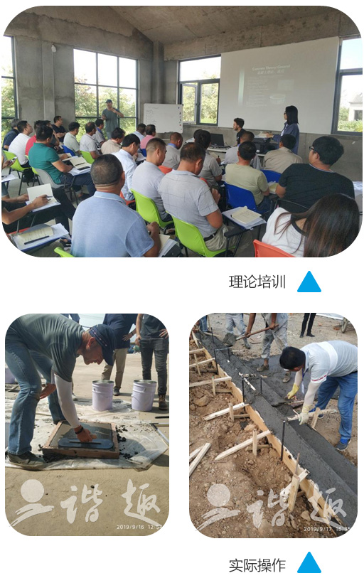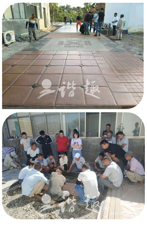 培訓采用理論結合實際的方法逐步推進。理論培訓讓所有參加培訓的人員了解熟悉彩色混凝土的科學原理。從最根本的方面了解,這樣可以讓人知其然也可知其所以然,更好的提高施工技術。現場實際操作讓處于一線施工現場的員工了解更多的施工技術,施工方法。改掉以前的一些不正確,效率不高的施工方法。從而達到更高的施工技藝,為以后的客戶提供更加優質的服務。